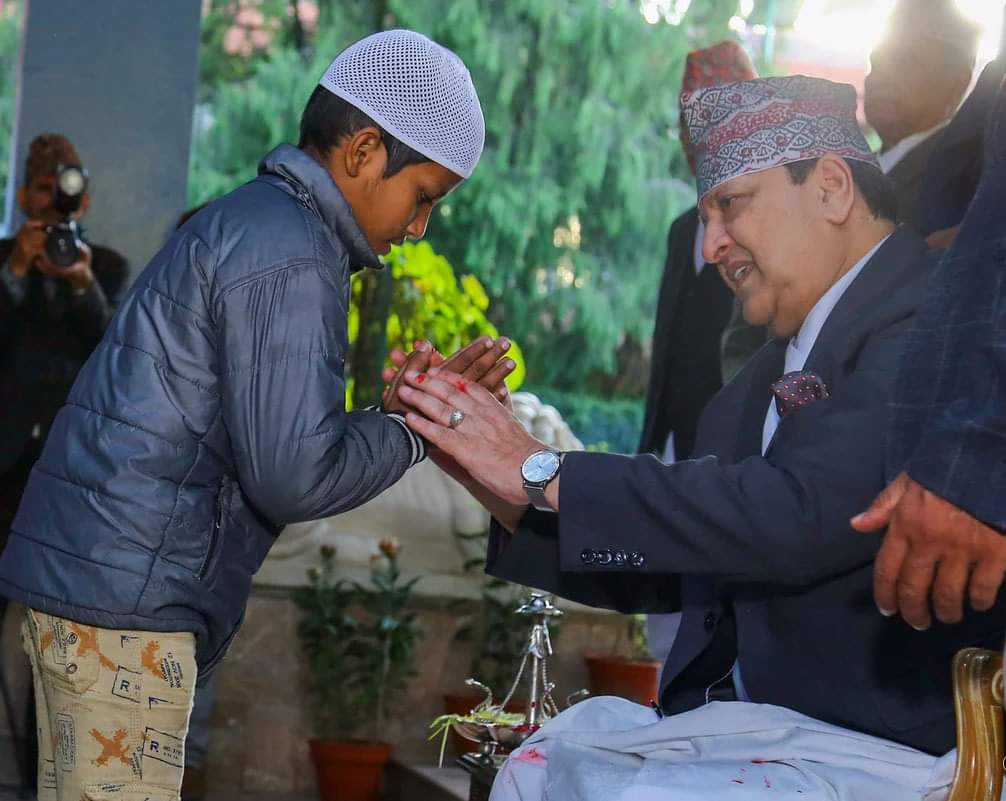 काठमाडौं : हिजो पूर्वराजा ज्ञानेन्द्र शाहले सर्वसाधारणलाई बडादसैंको अवसरमा टीका लगाइदिएका थिए। मंगलबार दिउँसो ४ बजेदेखि निर्मल निवासमा सयौं शुभेच्छुकहरूको भीड लागेको थियो। पूर्वराजा शाहबाट टीका ग्रहण गर्न नेताहरूसमेत निर्मल निवास पुगेका थिए।