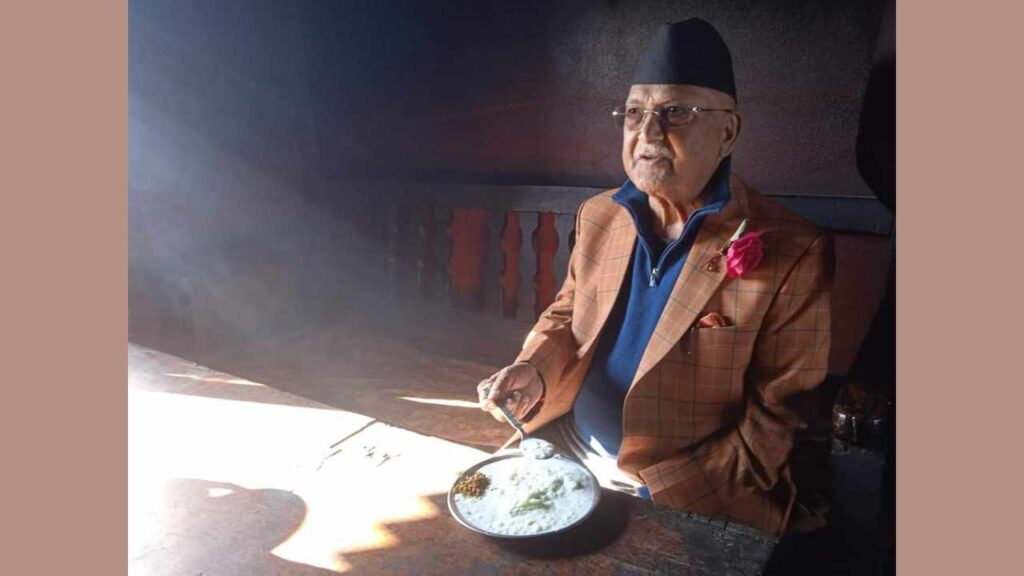 त्यस क्रममा ओलीसहितको टोली डडेलधुराको गन्यापधुरा-१ साहुखर्क पुगेको हो । काँग्रेस सभापति शेरबहादुर देउवा यही गाउँका हुन् । झुलाघाट जानेक्रममा गन्यापधुरा, साहुखर्क, डडेलधुरामा पचास वर्षदेखि आगो ननिभेको बाजेको खीर पसलमा अध्यक्ष ओलीसहितका नेताहरूले चिया, खीर र खुवा खाएका यात्रामा सहभागी नेता विष्णु रिमालले सामाजिक सञ्जाल फेसबुकमार्फत जानकारी दिएका छन् ।